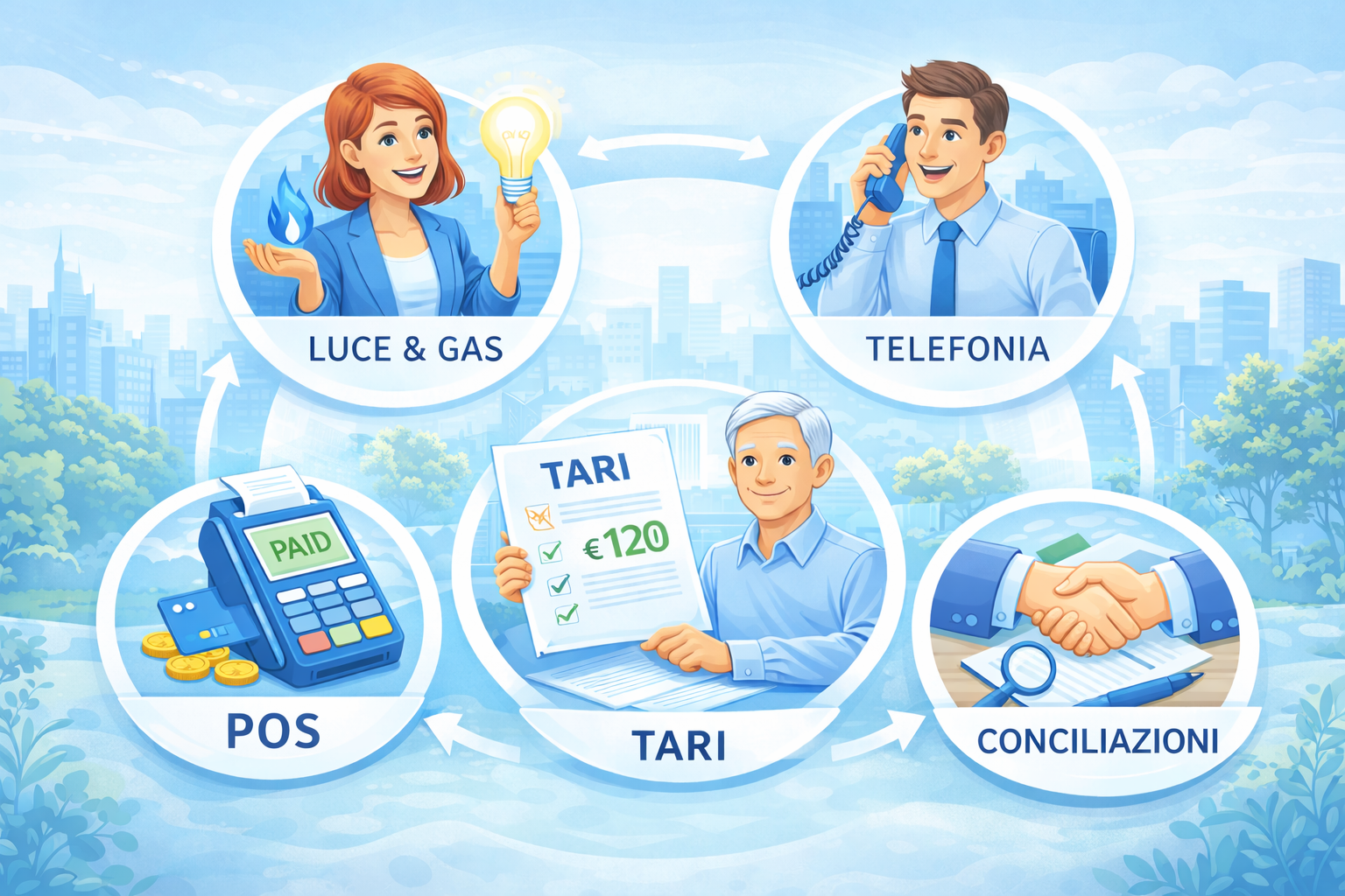 Energia, Telefonia, POS per le soluzioni di pagamento, verifica TARI, Conciliazioni energetiche e telefoniche: una gamma completa di servizi pensati per rispondere alle esigenze reali di privati e aziende. Più servizi significa più valore, più clienti e più opportunità per la tua attività.
